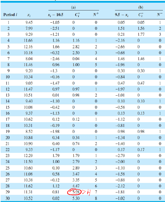그리고 Ci의 값이 우리가 원하는 interval H를 넘어서는 period를 체크합니다. Ci > H => out of control