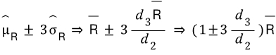 - μ and σ을 알 때, R 차트의 기본적 토대는 아래와 같다.